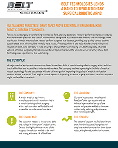 The Challenge: The customer needed to incorporate belts and pulleys in their system’s robotic arms. Due to the highly delicate nature of the surgery, the solution needed to be small and strong with zero risk of backlash.